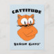 Cartão-postal do Señor Gato Mustache. Este cartão-postal mostra a imagem do bigode, o senhor Gato, com braços cruzados. No topo, a impressão a negro é a palavra "CATTITUDE". A cor de fundo é azul.