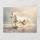 Cartão Postal Cavalo Branco Correndo na Praia