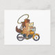 Cartão Postal Cavalo como Cowboy com Laço & Motocicleta