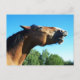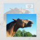 Um cavalo de baía entra no ar com uma linha de árvores de verão à distância e sob um belo céu azul e árvores verdes. Talvez ele esteja dizendo oi para alguém. Talvez você também possa. Diga "oi" a alguém que apreciaria. As pessoas adoram receber alguma coisa pelo correio.