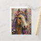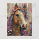 Arte gerada pela IA de um lindo cavalo marrom com homem roxo e flores