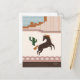 Envie uma nota com espírito selvagem e estilo de eterno. Este cartão-postal, que chama a atenção, apresenta um poderoso buck-médio-cavalo marrom ao lado de um cacto solteiro do deserto, colocado sobre um fundo inspirado pelos padrões e cores dos tradicionais cobertores nativos americanos. Ilustrada por Noël Snow em estilo limpo e gráfico com um sentimento aconchegante e tecido, é perfeita para colecionadores, amantes de cavalos, ou qualquer pessoa que aprecie a beleza do Ocidente indomado.