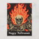 Cartão Postal Caveira sobre Fogo Linocus Art Feliz Dia das Bruxa