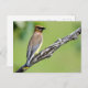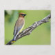 Belo Cedar Waxwing empoleirado num galho, com um fundo primavera-verde-creme.