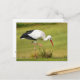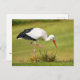 Cegonha branca fechada (Ciconia ciconia) sobre a grama, uma perna elevada, procurando comida perto do lago