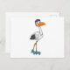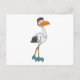 Cartão Postal Cegonha como patinador inline com patins de rodas