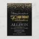 Um design de aniversário elegante, apropriado para mulheres e homens. Design dourado com letras criativas, fundo preto. Maneira perfeita de anunciar a celebração de aniversário. Por favor, personalize o texto!!! Elementos decorativos podem ser redimensionados ao clicar no botão personalizado.