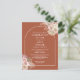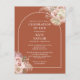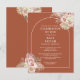 Aquarelas florais lindas de grama das pampas e uma moldura elegante de arco enquadram a celebração da vida, e os detalhes do funeral são apresentados em tipografia moderna sobre um fundo terracota. Criado por Thisisnotme©