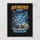 A bold and energetic tribute to Atheist Day showcases science, knowledge, and rational thought through glowing atomic symbolism and classic scientific tools.