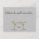 Este é um cartão postal de encorajamento/motivação legal que diz 'Celebre as pequenas vitórias primeiro...' acima de duas taças de martini 'dançando' e formando um rosto sorridente. Um grande lembrete para todos nós para sermos gratos por todas as pequenas vitórias primeiro antes de podermos ver as coisas grandes em nossas vidas...