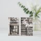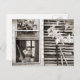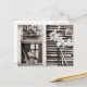 Um cartão postal inspirado em vintage de uma antiga janela de celeiro com muitas coisas legais.