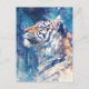 This ethereal postcard features a majestic tiger gazing upward toward a shimmering night sky. Rendered in a stunning watercolor style, the tiger’s fur blends seamlessly with a wintry palette of indigo, teal, and soft amber. The background reveals a deep blue forest under a canopy of stars and geometric light crystals. Intricate paint splatters and bleeding textures create a magical, dreamlike atmosphere that captures the spirit of the wild under a cosmic glow. This postcard is a perfect choice for sending a soulful message, a unique birthday wish, or as a striking piece of miniature wall art for nature and fantasy enthusiasts.