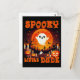 Cartão Postal Cemitério de Halloween com Ghost fofo e lua gigant