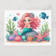 Cartão Postal Cena De Sereia E Amigos De Peixes Bons