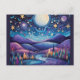 Cartão Postal Cena Noturna Fantástica com Lua Grande
