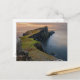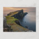 Uma legal paisagem marinha da costa da Escócia. Lindo e cênico terreno escocês. Colinas verdes e rochas. Um mar tranquilo calmo embaixo. Um ouro de pôr do sol a distância.