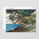 Um cartão postal de arte fina com uma aquarela, Bermudas (1900), do artista americano do movimento realista, Winslow Homer (1836-1910). Uma paisagem de arte fina de uma enseada junto ao oceano com uma árvore suspensa.