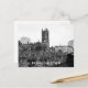 Belo cartão postal preto e branco do Manchester City Center e da Catedral de Manchester.