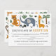 Certificado de Adoção de Animal Festa de Aniversário de Dois Garotos da Selva Selvagem apresenta girafa, elefante, leão, zebra, leopardo, macaco, cobra, crocodilo, animais selvagens fofos e coloridos com texto em tipografia moderna preta e mostarda. Perfeito para meninos ou meninas, celebrações de aniversário de dois anos. Criado por Evco Studio. Para itens coordenados, visite www.zazzle.com/store/evcostudio