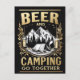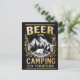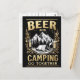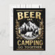 Uma ilustração preta e dourada representando uma cena de montanha com uma barraca, duas cervejas e o texto Cerveja e Acampamento Combinam.