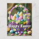 Este cartão-postal vibrante apresenta um cesto de Páscoas verdadeiramente criativo e festivo cheio de ovos. Este cartão postal de férias constituiria uma excelente saudação para amigos, familiares e colegas de trabalho.