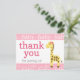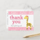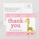 Cartão Postal Chá de Bebê da Girafa com Laço Rosa para Menina Ob