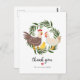 Um doce agradecimento pelo cartão de presente de bebê com um pintinho da fazenda, galinha e galo. Personalize os detalhes para torná-lo exclusivamente seu e compartilhe a emoção de dar as boas-vindas ao seu bebê no mundo.