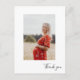 Cartão de agradecimento de chá de bebê moderno com um design de "obrigado" em escrita à mão com uma foto favorita do seu bebê / família. Envie sua foto e personalize o verso do cartão com sua mensagem de agradecimento.