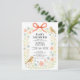 Celebrar a mãe a ser com este doce e caprichoso convite de chá de fraldas, perfeito para uma celebração temática de primavera ou jardim. O design apresenta um delicado arco de aquarela floral de pêssego mole e flores silvestres azuis, acentuado por duas aves encantadoras e um arco de coral pintado à mão no topo. O texto é definido em uma fonte serif clássica, oferecendo um eterno e uma sensação elegante. Este convite captura a alegria gentil de acolher um pequeno, fazer-o uma escolha ideal para um encontro quente e inspirado na natureza. Personalize o seu hoje para criar uma manutenção tão especial quanto a ocasião!