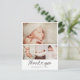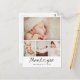 Um belo obrigado fotográfico ao estilo moderno que você faz postais perfeitos para agradecer aos seus convidados chás de fraldas por presentes, amor e suporte recebidos. O design moderno apresenta uma colagem de 4 fotos personalizáveis com uma principal colocada no centro e as outras menores abaixo e a tipografia moderna. Na parte de trás está a mensagem personalizável do seu obrigado. Através do botão "personalização", você pode substituir as fotos e alterar o texto. Faça com que este belo cartão moderno seja seu, inserindo sua própria informação! Visite nossa loja para mais produtos, coleções e selos de borracha.