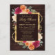 Gorgee Rustic Watercolor queimada laranja e flores vermelhas outono autóctones design floral sobre um fundo de madeira marrom com borda de folha de ouro