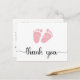 Obrigado bonito que você faz para o chá da sua menina com "obrigado você" em um roteiro na moda com pinceladas e uma aquarela rosa de pés de bebês. No verso, personalize o seu obrigado, envie uma mensagem ou deixe o vazio para uma nota manuscrita.