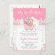 Este convite de chá de fraldas de aquarela fofo e divertido apresenta um urso adorável em uma trenó rosa cercada por neve, montanhas e pinheiros. O texto combina o script manuscrito e as fontes sans serif para uma aparência na moda e moderna. Lindos arranjos de flores brilhantes e confete prateado adicionam um toque festivo. Isto é perfeito para um chá de fraldas de Natal ou de inverno. Gráficos por www.etsy.com/uk/shop/SunflowerDayLove