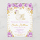 Este convite de chá de fraldas giro e caprichoso apresenta um elegante cisne e rosas roxos arranjos florais com falso confete dourado. O texto combina o script manuscrito e as fontes sans serif para uma aparência na moda e moderna. Isto é perfeito para um chá de fraldas temático cisne. Gráficos por Heideramalice e SunflowerDayLove