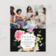 obrigado de chá de fraldas floral cor-de-água rosa bonito que você faz no cartão-postal apresenta uma foto, um obrigado editável que você envia e um fundo preto elegante.