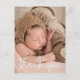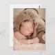 Personalizado com a foto do seu bebê na frente e mensagem especial na parte de trás. Este design usa uma fonte elegante desenhada à mão para um toque de sofisticação. Expresse a sua entusiasmo de anunciar o nascimento do seu filho e envie a sua gratidão ao mesmo tempo aos chás de fraldas convidados, familiares e amigos. As palavras "Obrigado" estão em uma fonte branca moderna. Formato vertical. Inclua estatísticas de natalidade e seu endereço de retorno para facilitar o envio.