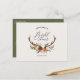 Convite de chá de noiva com folhagem rústica, floral e chifres de veado. Com bela folhagem em aquarela, flores brancas, terracota, ferrugem e rosa luxuoso complementadas com design moderno em preto e verde sage e escrita à mão em letra elegante. Este convite moderno certamente definirá o estilo da sua festa próxima.