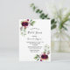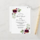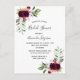 Na frente: Decorado com flores escuras e burgosas, rosas, penas e verde ao estilo boho. Um fundo branco elegante. Modelos para o nome da noiva e detalhes da festa. O nome e o texto: o Chá de panela é escrito com um texto escrito à mão, letras coloridas borboletas. Fundo: fundo branco e rosas.