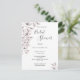 Um chá de panela de tendência em branco e poeirento, rosa. Um fundo branco chic na frente. Decorados com esférulas botânicas de cor rosa poeirenta e folhagem. Escrita moderna e extensa, tipografia com texto: Chá de panela. Modelos para a noiva ser o nome e os detalhes da festa. Texto das cinzas escuras. Fundo: fundo rosa poeirento colorido. Dica: Se você não quiser que pareça um cartão postal, clique em personalizar, vá para o verso e remova o divisor e o carimbo de posto.