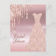 Chá de panela elegante, clássico, glamouroso e feminino. Um vestido de ouro de rosa com um pingado de ouro falso rosa. Fundo de aparência metálica escura rosa dourada. Com o texto: Chá de panela na frente escrito com um moderno e escuro rosa, escrita à mão com letra estilo. Adicione os detalhes do evento às letras coloridas de cinza escura.