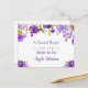 Personalize esta "placa de recebimento de Chás de panela de Flores Violetas Púrpuras de Aquarela" para adicionar um toque especial. É fácil personalizar para combinar suas cores e estilos. (1) Para mais personalização, clique no link "personalizar mais" e use nossa ferramenta design para modificar esse modelo. (2) Se precisar de ajuda ou itens correspondentes, entre em contato comigo.