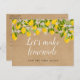 Esta divertida mudança de chá de panela de cor d'água de limões rústicos pode ser personalizada com suas informações de adiamento. O inverso tem detalhes adicionais, incluindo o seu site, com o endereço de devolução e o espaço para o endereço do destinatário. Uma maneira perfeita de manter seus convidados informados. Projetado por Thisnotme©
