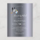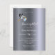 Um chá de fraldas por email/cartão de convite para chás de longa distância virtual. Um fundo metálico falso prateado, letras brancas. Com uma cegonha voadora segurando um bebê. Personalize e adicione o nome da futura mãe e os detalhes da festa Zoom/Skype. Verso: design de cartão postal comum
