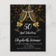 Óculos de champanhe e fitas douradas com confete dourado em preto com tipo branco, 50 e convite de aniversário fabuloso. Um convite preto moderno com um tipo de escrita moderno. Óculos de champanhe espumantes. Personalize com suas informações de partido. Excelente para um macho ou fêmea. Personalizar para qualquer idade. 30, 40, 60, 70, 80 e mais.