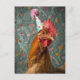 Imagem engraçada de uma galinha marrom vestindo um chapéu de festa