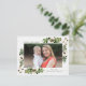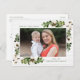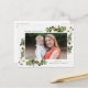 Mande cartões de natal para amigos e família com nosso cartão postal de feriado Southern Charm. O cartão postal de feriado rústico mostra sua foto na frente, enquadrada por dois buquês de folhas de cor-d-água verde e algodão com tela de fundo de proteção de madeira esbranquiçada. Personalize a frente da placa adicionando seu nome e uma saudação personalizada. A parte traseira da placa oferece espaço para seu endereço de devolução, saudação personalizada e seus nomes.