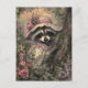 Cartão Postal Charming Raccoon em um Vestido e Bonnet