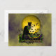 Uma silhueta do gato preto de Théophile Steinlen para o clube do Noir do Le Chat num cenário moderno para o Grás Mardi com uma lua amarela brilhante, muitas miçangas, e as palavras "Laissez les bon temps rouler", que significa "Deixem os bons tempos rolar."