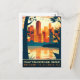 Veja os arranha-céus de Atlanta do rio Chattahoochee. Cartaz viagem em cores vibrantes e laranja.