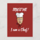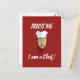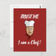 Cabeça de chef com chapéu, corcunda vermelha e texto personalizado.